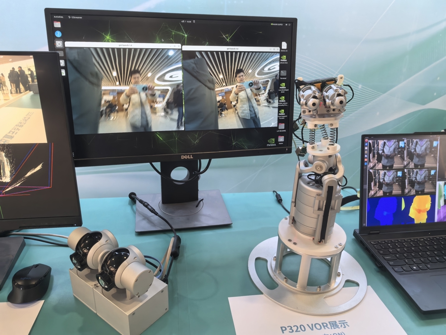 今天在发布会亮相的双目立体视觉BinoSense P320建树,摄取并联式构型,具有体积小、分量轻、功耗低、反馈速率快等本性,适当集成到机器东谈主头、机器狗头等平台上。记者在展台前看到,这双“仿生眼”与庸俗的机器东谈主双目视觉系统不同,不错在不竭震动的环境中看清物体,把明晰的影像呈咫尺屏幕上。