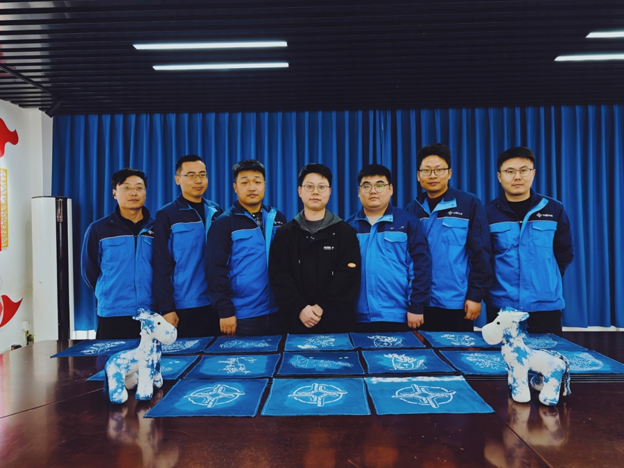 为了让神色员工恍悟蓝草染料“后起之秀而胜于蓝”的当然之好意思,非遗传承东谈主郁弘晋接收断刀的手法,联结冰裂纹的姿色,手工刻制出一块唯一无二的中交logo蓝印花版。