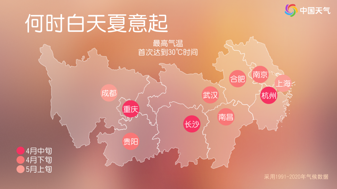 要知说念,终年(1991-2020年)长江中卑鄙及西南地区东部的首个30℃,大多出当今4月中旬至5月上旬,本年是“提前入夏”的既视感。