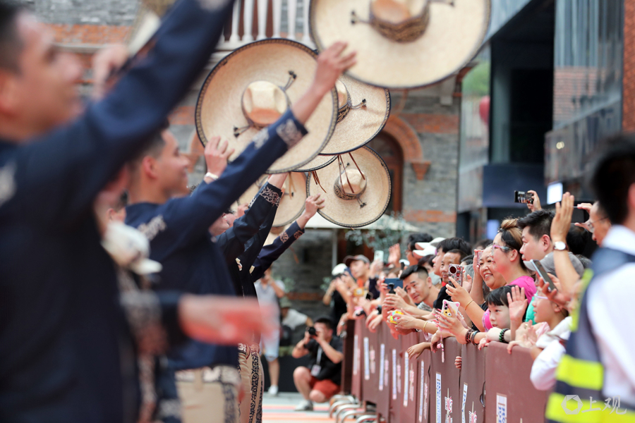 2025年9月14日,上海旅游节巡游队伍走进虹口滨港商业中心今潮8弄,观众表示“仿佛走遍世界也不过一条街的距离”。