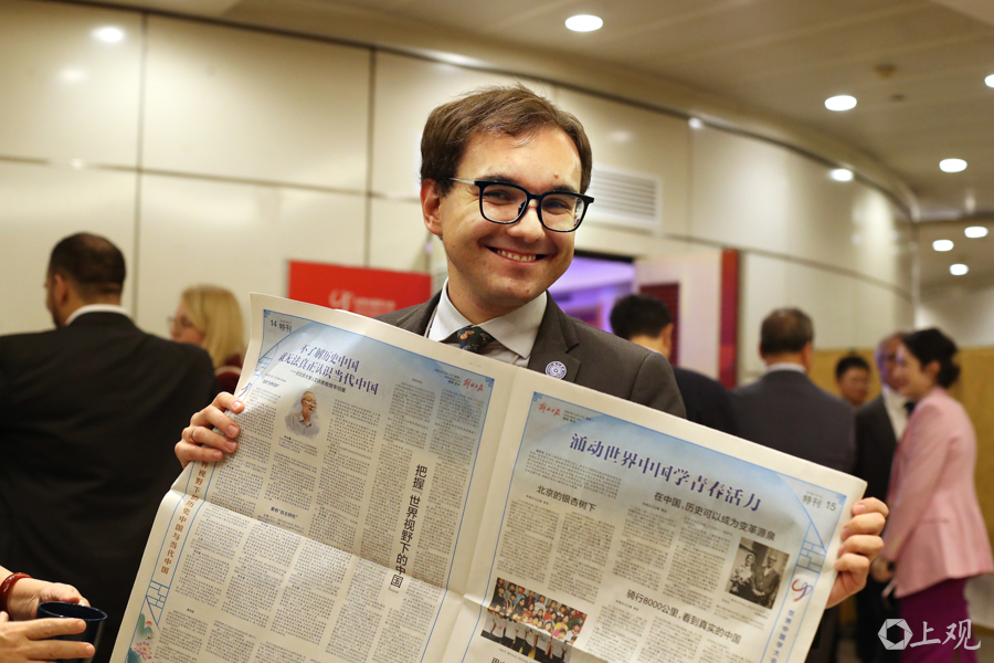 2025年10月14日,来自智利的卜睿哲拿着当天的解放日报,欣喜地给大家分享刊登的外祖父母的照片。“我的外祖父曾是一名外交官。他担任智利外交部副部长时,曾参与批准在智利正式开设中国第一个贸易办事处的相关事宜。”当日,第二届世界中国学大会在上海开幕。