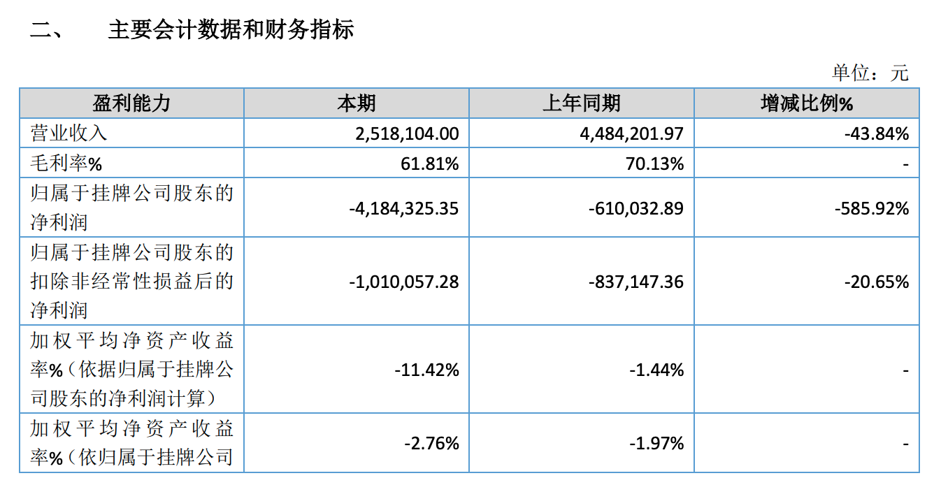 六智信息是一家新三板挂牌公司,上市时间为2016年3月。根据公司2025年半年度报告,其2025上半年实现营收251.81万元,同比下降43.84%;归母净利润为-418.43万元,同比扩大585.92%。此前的2022-2024年,六智信息营收连年下滑,净利润也均处于亏损状态,分别亏损917.26万元、244.70万元、196.29万元。