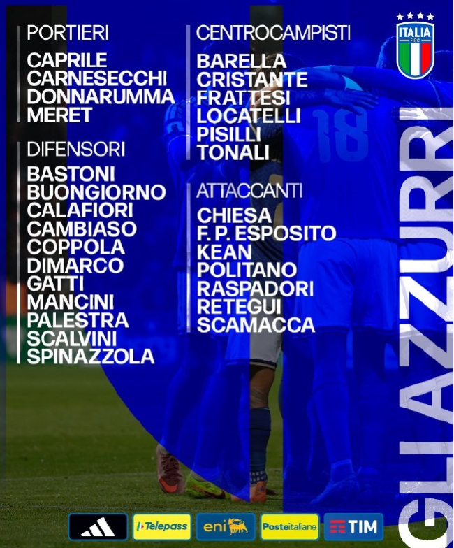 北京本事3月20日,意大利发布世初赛大名单,曼城门神多纳鲁马领衔,巴斯托尼、基耶萨在列。