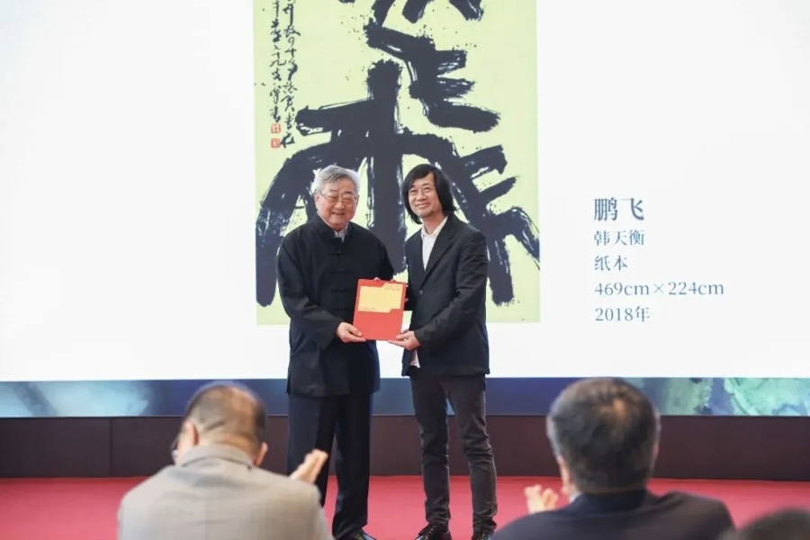 展览中有两件作品颠倒引东谈主凝视,这是韩天衡先生独特创作的“广州定制”。长达11.25米的《荔枝诗卷》,甄选自唐至明清17位名家吟咏岭南荔枝的经典诗作,一笔一划将千年粤韵写进绵长的卷轴里;书道作品《广州花市》则以壮健翰墨书写五言诗,让羊城花市的闹热状况涉笔成趣。开幕式上,他还将巨幅作品《鹏飞》无偿捐馈遗广东好意思术馆,以艺术之礼架起沪粤文化调治的连心桥。