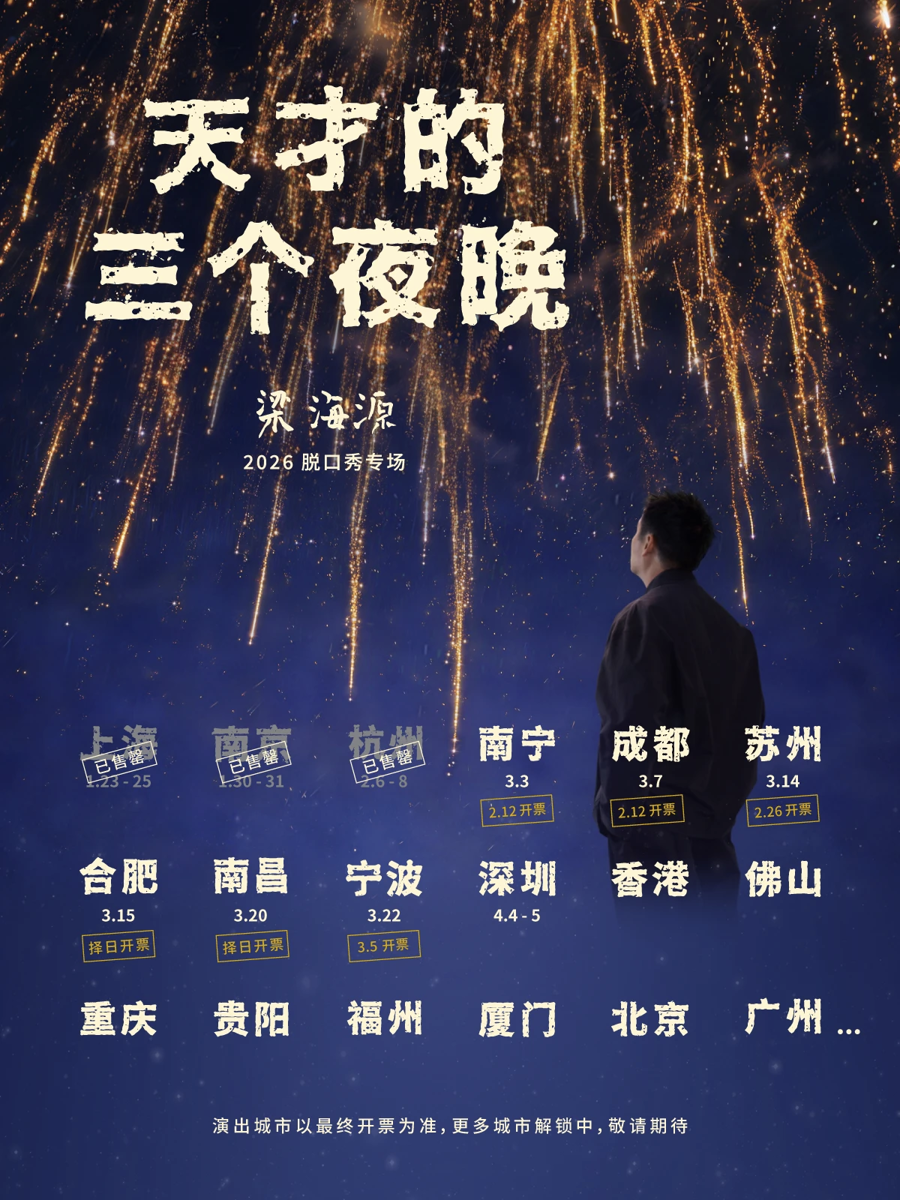 2024年12月30日,《坐在角落的人》推出线上版,对梁海源意味着老专场结束,新专场启动。“我本来计划2025年6月写完《天才的三个夜晚》,因为有拖延症,6月没有完成,那就7月8月,然后再9月10月,我一直在做,就行。”