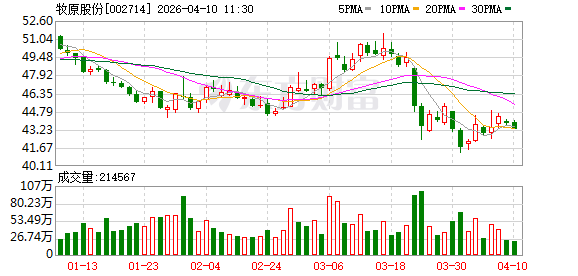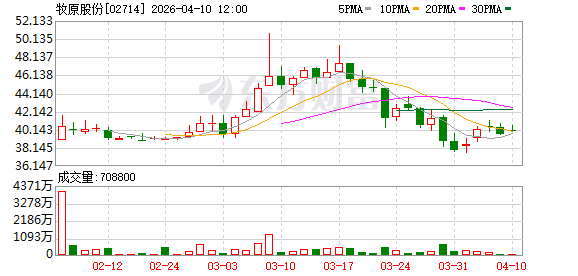 趣富配资4月10日,牧原股份在A股的午间收盘价报43.24元/股,跌1.28%;其在港股的午间收盘价报40.06港元/股,涨1.01%。
